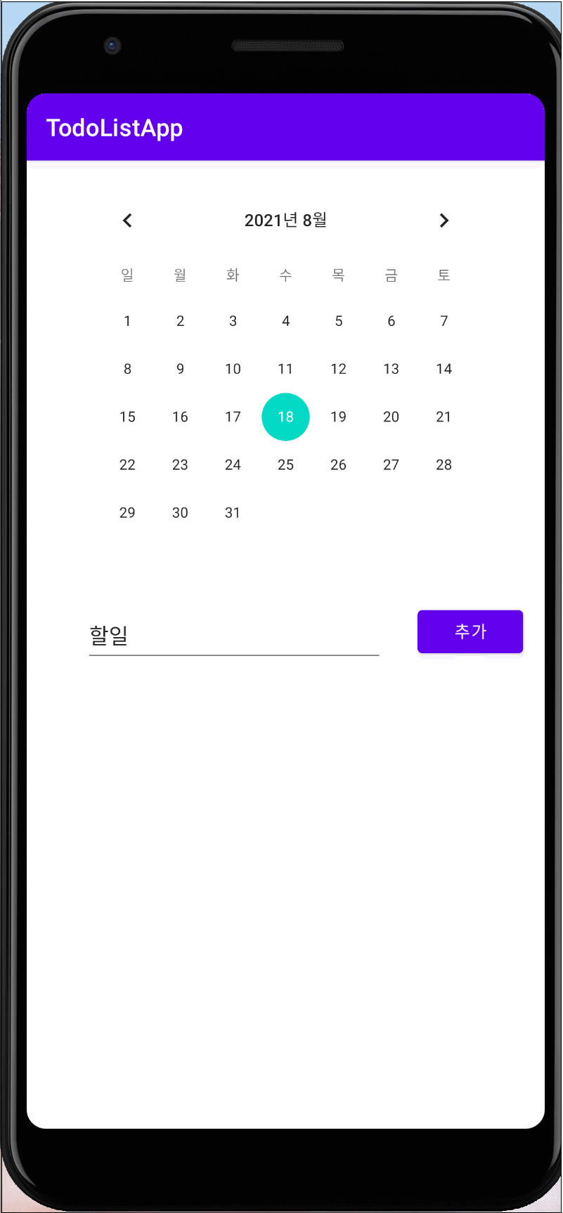 TodoList 앱 개발에는 RecyclerView, MVVM, Room 데이터베이스의 기초지식이 필요하다. 이 앱의 기능은 캘린더 뷰에서 날짜를 선택하여 선택한 날짜에 맞는 할 일 리스트를 보여주고, 할 일을 추가하는 기능을 구현한다.