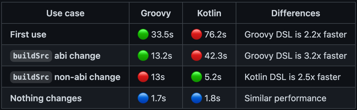 내가 기존에 사용하고 있던 dsl은 확장자명이 .gradle 로 끝나는 Groovy DSL 이다. (DSL 이란 특정 분야에 최적화된 프로그래밍 언어를 뜻한다.) Groovy DSL 과 Kotlin DSL 을 비교해보자.