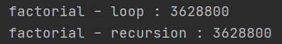 println("factorial - recursion : $result")