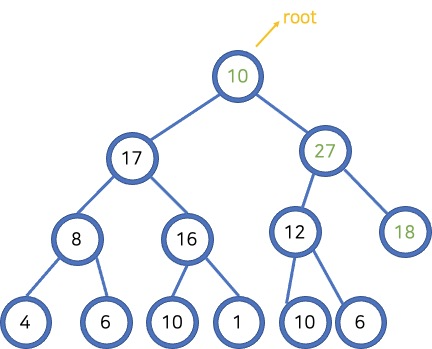 trickleUp(size + 1, value) // 가장 마지막에 추가 되는 위치와 넣을 값(타겟)을 넘겨줌