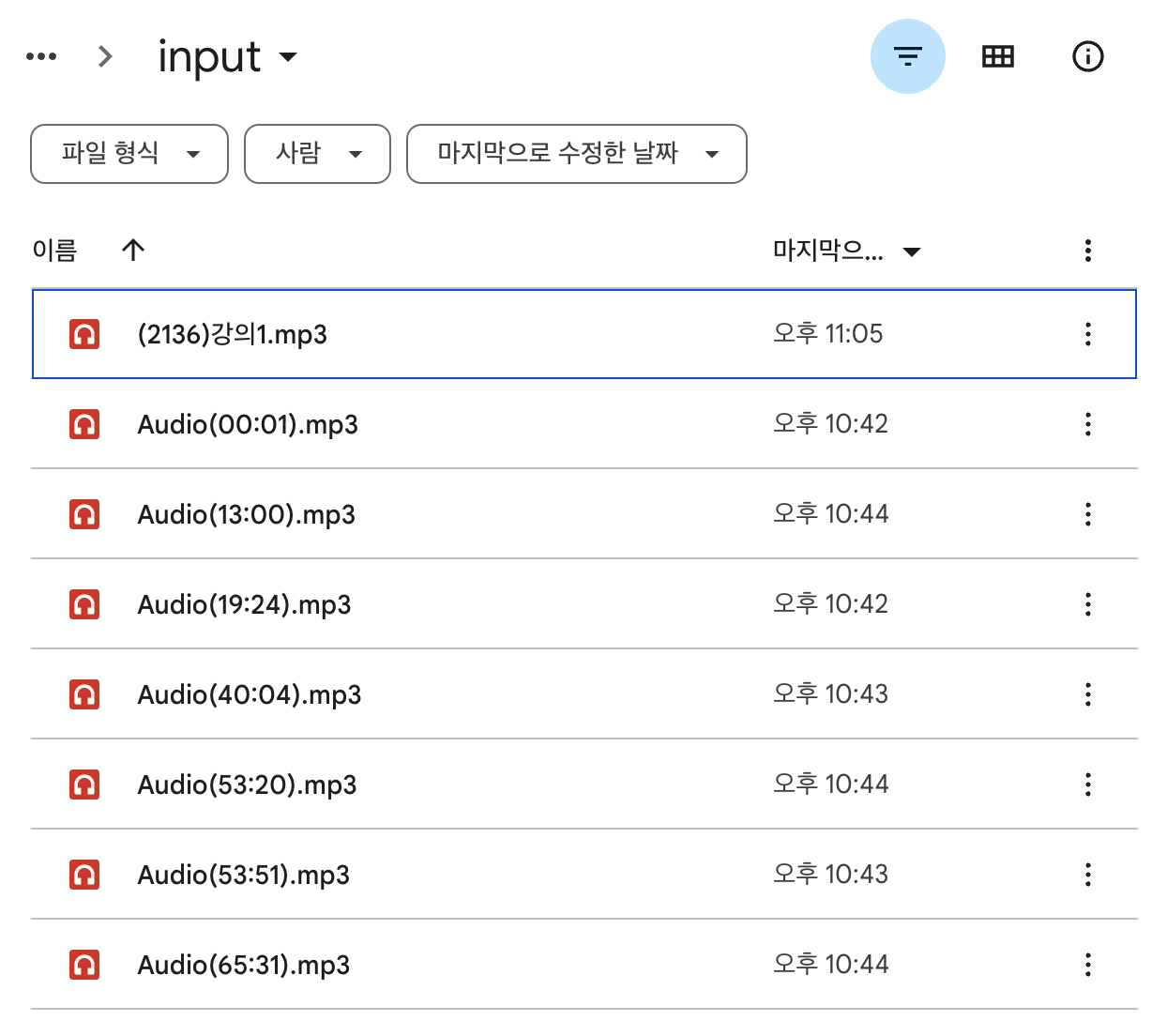 전체 병합 mp3 경우에는 파일명.mp3입니다. (ex. 강의1.mp3)