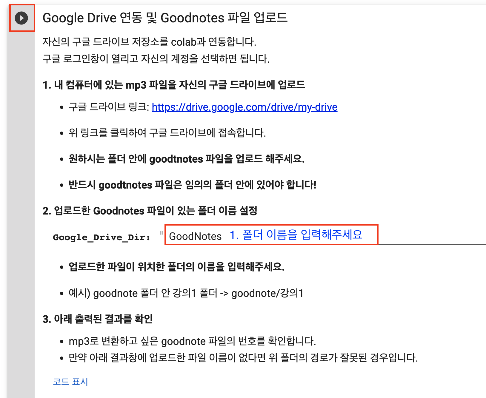 (ex. "GoodNotes 폴더 -> A강의" 폴더에 파일이 위치하면? GoodNotes/A강의 로 입력)
