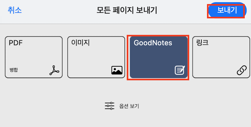 GoodNotes로 선택 후 [보내기]를 클릭합니다.