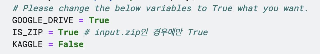 👉🏻 이미 Colab 버전을 사용하신분들은 추가적으로 파일 업로드 안하셔도 됩니다! input 폴더가 있는 폴더명만 제대로 입력해주세요.