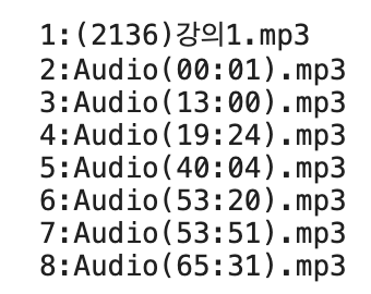 위 사진처럼 결과창에 여러분들이 Google Drive에 업로드한 mp3 파일들을 번호와 함께 출력합니다.
