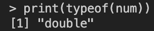 실제로 `typeof()`를 이용해 데이터 타입을 출력해보면 `double`(실수)로 출력되는 것을 확인할 수 있습니다.