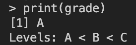 grade <- ordered("A", c("A", "B", "C"))