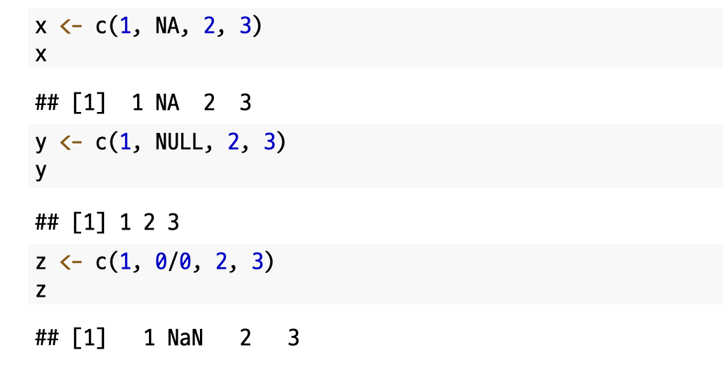 4) NA / NULL / NaN