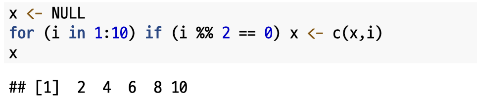 위에서 언급한 것처럼 R에서는 변수를 생성할 때 선언과 할당을 동시에 해야했습니다. 그런데 프로그래밍을 하다보면 변수를 먼저 선언하고 (만들어놓고) 후에 변수에 값을 할당하고 싶은 경우가 많이 생기는데요. 이 경우 NULL을 변수에 대입한 후 나중에 값을 넣어주면 됩니다.