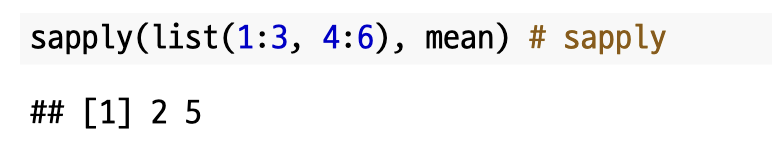 `sapply()`는 `lapply()`와 유사한데요. 다만, 차이점은 `lapply()`는 결과로 리스트를 반환하는 것에 반해 `sapply()`는 벡터, 행렬, 배열을 반환합니다.
