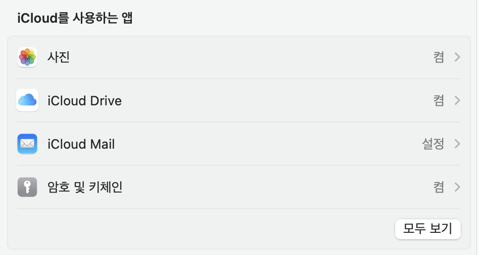 icloud를 사용하는 앱에서 모두 보기를 클릭합니다.