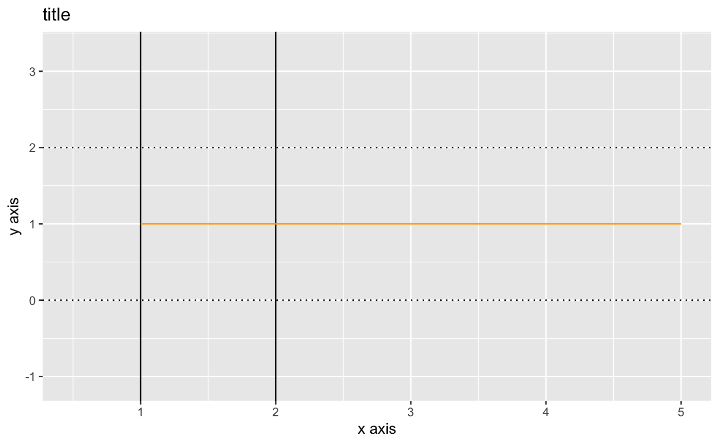 geom_segment(mapping=aes(x=1,y=1,xend=5,yend=1),color="orange")