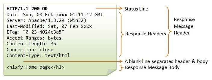 응답 포맷은 요청 포맷과 크게 다르지 않습니다. 헤더와 바디로 구분되고 헤더에는 한 줄씩 속성이 들어갑니다.