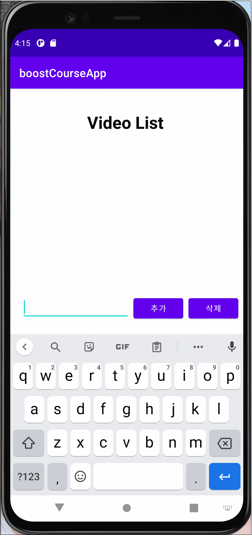 이번 예제는 recyclerView + RoomDatabase를 이용한 예제이다. 클라이언트가 데이터를 입력하면 데이터베이스에 추가하고 화면에 표시한다.
